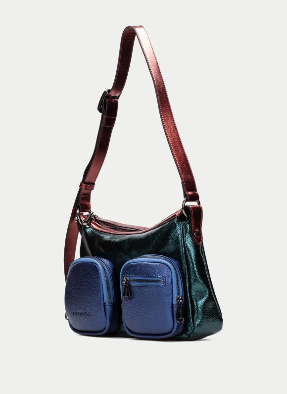 Bolso bandolera con asa ancha y detalle de bolsillos delanteros con cremallera. Este modelo incorpora un asa larga modulable con altura máxima de 72 cm desde el hombro y detalle de logotipo en la misma. Es perfecto para el día a día gracias a su doble compartimento y su amplia capacidad. Medida: 27 cm 17 cm x 10 cm