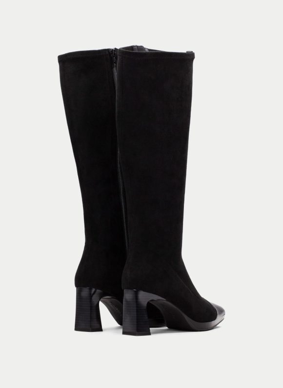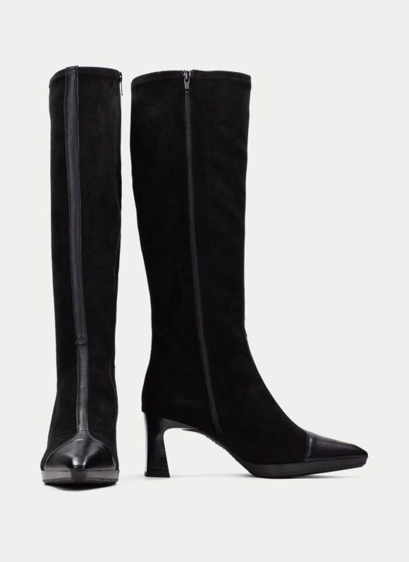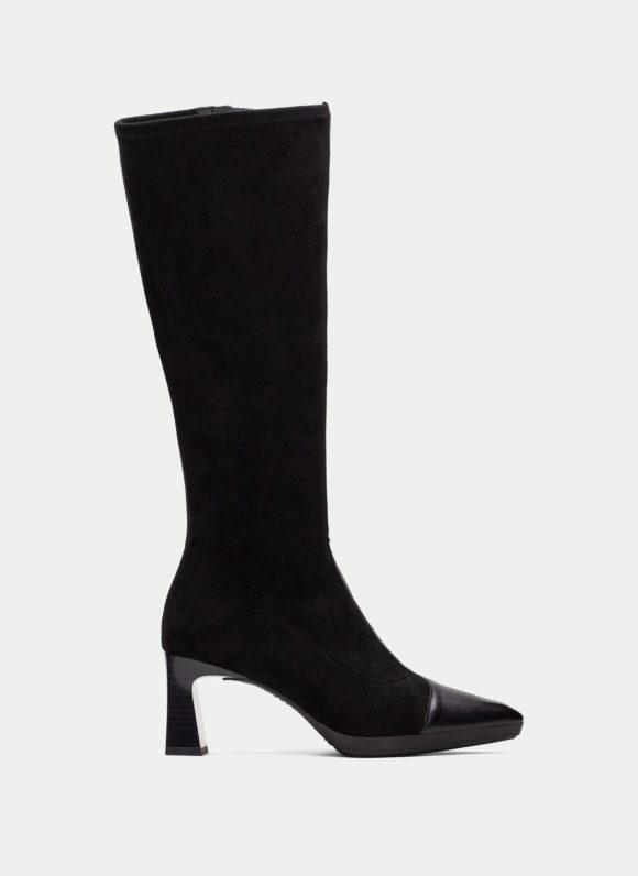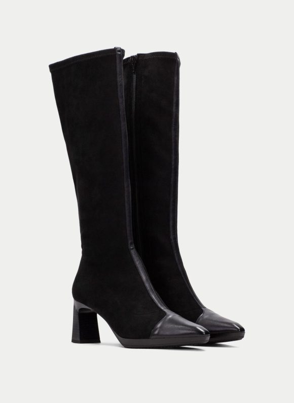 Bota alta elaborada en piel, punta fina y tacón de 7 cm. Diseño de caña strech. Este zapato incorpora la tecnología Triflow, amortigua cada paso aportando flexibilidad y confort en la pisada, gracias a su triple almohadillado.