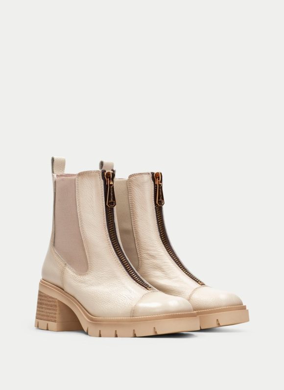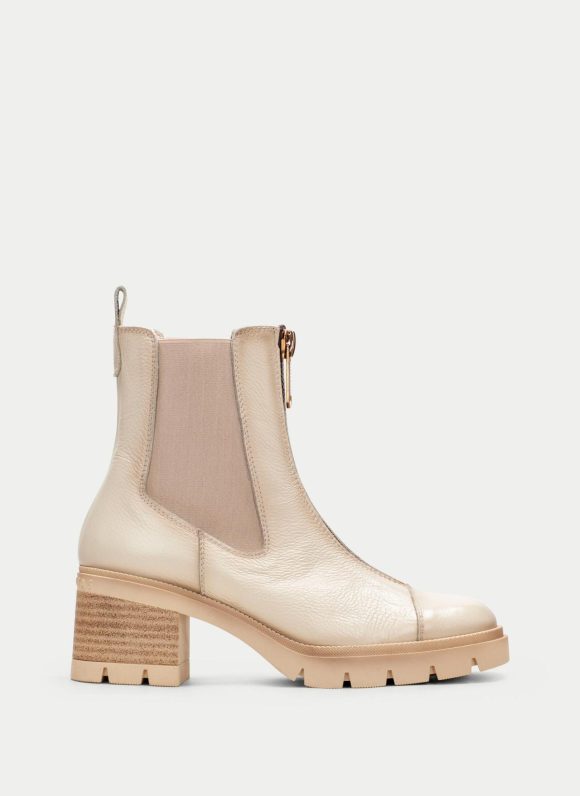 Botín con suela track y tacón bloque de 5 cm. Detalle de laterales elásticos estilo chelsea. Este zapato incorpora la tecnología TRIFLOW, amortigua cada paso aportando flexibilidad y confort en la pisada, gracias a su triple almohadillado.
