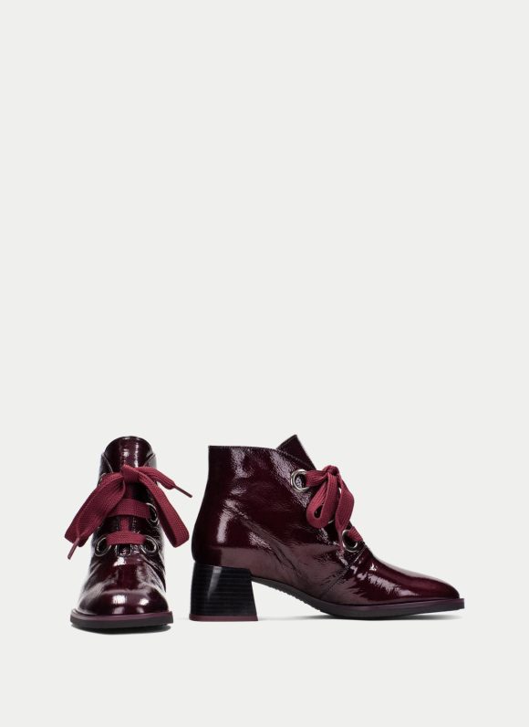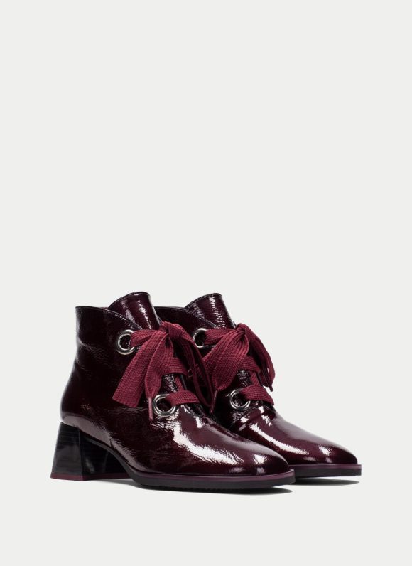 Botín con tacón ancho de 5 cm. Este modelo incorpora cordones gruesos de lazo y ojales metálicos, ofreciendo un estilo moderno y audaz. Perfecto para dar un toque distintivo y sofisticado a cualquier atuendo. Además, este zapato incorpora la tecnología Triflow, amortigua cada paso aportando flexibilidad y confort en la pisada, gracias a su triple almohadillado.